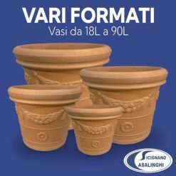 Sicignano | Vaso Festonato Ø65cm Doppio Bordo in Resina con Terriccio 80L Incluso, Colore Terracotta, Decorato con Motivi Floreali, per Giardino, Made in Italy (Ø 62 x 51h cm)