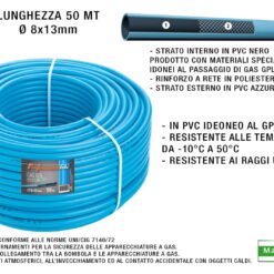 Tubo in PVC per GPL Ø 8×13 mm Gas Propano Liquido Matassa da 50mt Triplo Strato