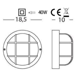 Plafoniera Applique Lampada Luce Rotondo con Gabbia per Parete Muro E27 Nero 40W