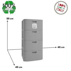 Cassettiera Domus 4 Cassetti Plastica Riciclata Made in Italy 40x40x80h Mocha