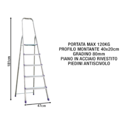 Sicos Scala 5 Gradini Alluminio MAX 120kg Antiscivolo Uso Domestico Professional