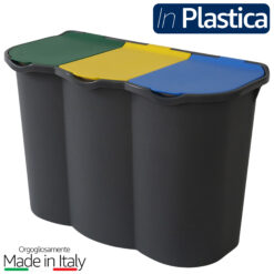 Contenitore PATTUMIERA Raccolta DIFFERENZIATA Unica BIDONE 3 Scomparti 80 Litri PLASTICA 009606, Multicolore, 3 Pezzi