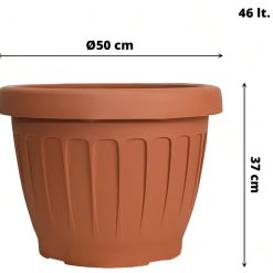 Bama Vaso Terra Tondo 50 cm per Fiori Piante con Sottovaso 46 Litri Plastica Color Terracotta, con Fori di Drenaggio, Resistente agli UV, Made in Italy