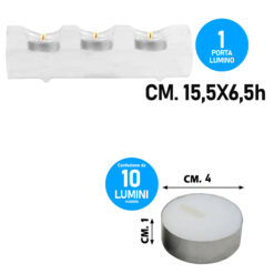 Sicignano | Set Portacandela Tealight 3 Fori in Vetro Trasparente con 10 Candele Tealight Inodore e Senza Fumo – Design Elegante e Versatile per Cene, Eventi e Decorazioni per la Casa