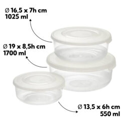 Set 3 Pezzi Contenitore Frigobox Alimenti Tondo Lt.1,7/1/0,5