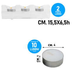 Sicignano | Set 2 Portacandele Tealight 3 Fori in Vetro Trasparente con 10 Candele Tealight Inodore e Senza Fumo – Design Elegante e Versatile per Cene, Eventi e Decorazioni per la Casa