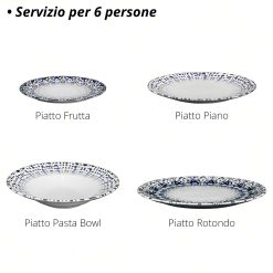 Sicignano | Set 18 Piatti Porcellana con Decoro a Rilievo Alchimia Blu Ø21/26/26.5/31 cm, Servizio per 6 Persone – Compatibile con Lavastoviglie Microonde, Resistente ai Tagli, Made in Italy