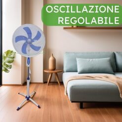 Ventilatore a Piantana Harry 45W con 5 Pale 40cm, Altezza 125cm, 3 Velocità e Oscillazione, Silenzioso per Casa