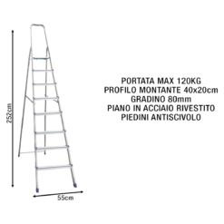 Scala Alluminio Domina 8 Gradini Sicos MAX 120kg Antiscivolo Fascia di Sicurezza