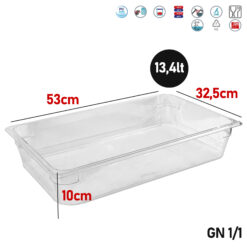 Sicignano | Contenitore Alimentare Trasparente GN 1/1 Policarbonato Litri 13,4, Resistente alle Macchie, Adatto a Basse Alte Temperature, Lavabile in Lavastoviglie, Impilabile, Scala Graduata