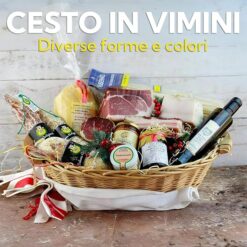 Sicignano | Cesto in Vimini Decorativo, per Regalo, Festività, Pasqua, Natale, con Accessori Opzionali per Confezione (Miele, cm.36x27x10h – Ovale)