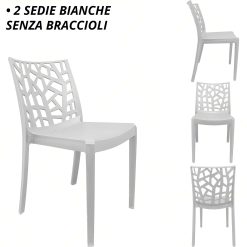 Set 2 Sedie Matrix con Tavolo Tondo Spritz, 3 Pezzi, Plastica, Completo Bianco – Impilabile, Resistente agli UV, Antiscivolo, Arredo Interno Esterno Bar Pub Giardino Terrazzo, Made in Italy