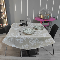Tovaglia Felpata Tonda Cm.160 Ecru’ Con Fiori