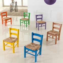 GIAQUINTO SEDIOLINA BAMBINO IN LEGNO, SEDUTA PAGLIA, METODO MONTESSORI, COLORE BLU