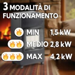 Sicignano | Stufa a Infrarossi GPL Camilla Nera 3 Mattoni | Potenza Regolabile 1,5-4,2 kW, Accensione Piezo, Completa di Tubo, Fascette e Regolatore, Riscaldamento Interni