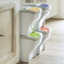 Tontarelli Trio – Cestino per la Raccolta differenziata con Anello Interno e Coperchio con Chiusura a Scatto, Plastica, 75 Litri, Multicolore, 78,5 x 32 x h 47,4 cm